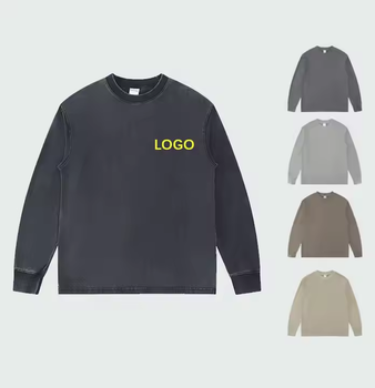 #1318, 280g 100% pamuk Crewneck boy uzun kollu T-shirt enzim giysiler yıkama ve yaşlı düşük adedi 2 adet
